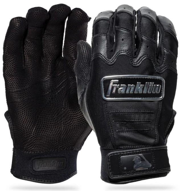 Showcased on-field by dozens of MLB® professionals, Franklin’s popular CFX Pro model has gone full color! A world-class quality Pittards® digital sheepskin leather palm ensures durability, softness, and superior grip at bat, while proprietary tectonic fit inserts accommodate flex across the hand back. Touched with a hint of chrome, these gloves are a must have on the diamond this season.
